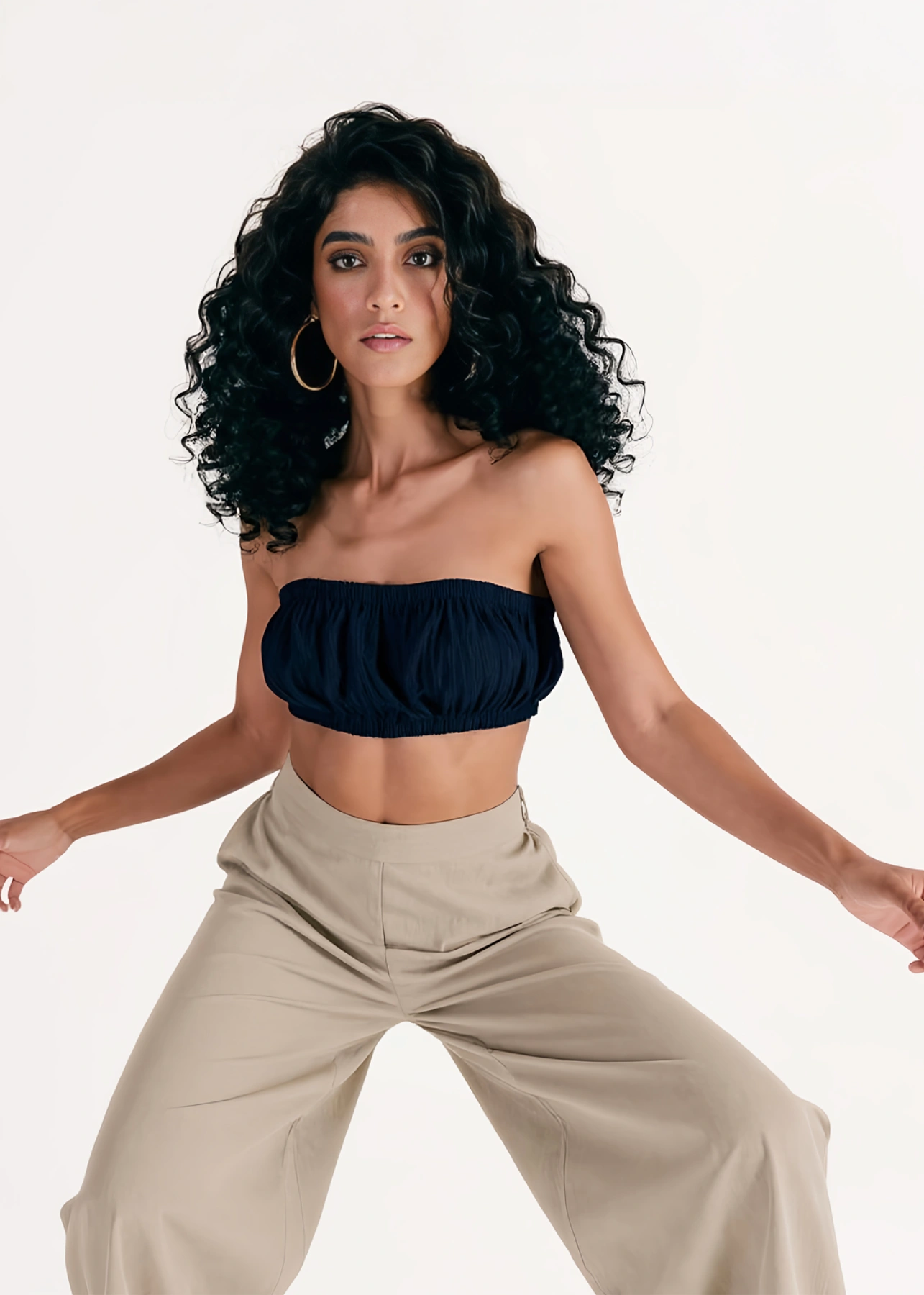 This strapless crop top is the perfect choice for a fresh and modern look. Designed with elastic bands at the top and bottom, it fits comfortably to the body, providing support and a flawless style. Ideal to pair with skirts, high-waisted pants, or shorts, this top is a versatile essential in your wardrobe.