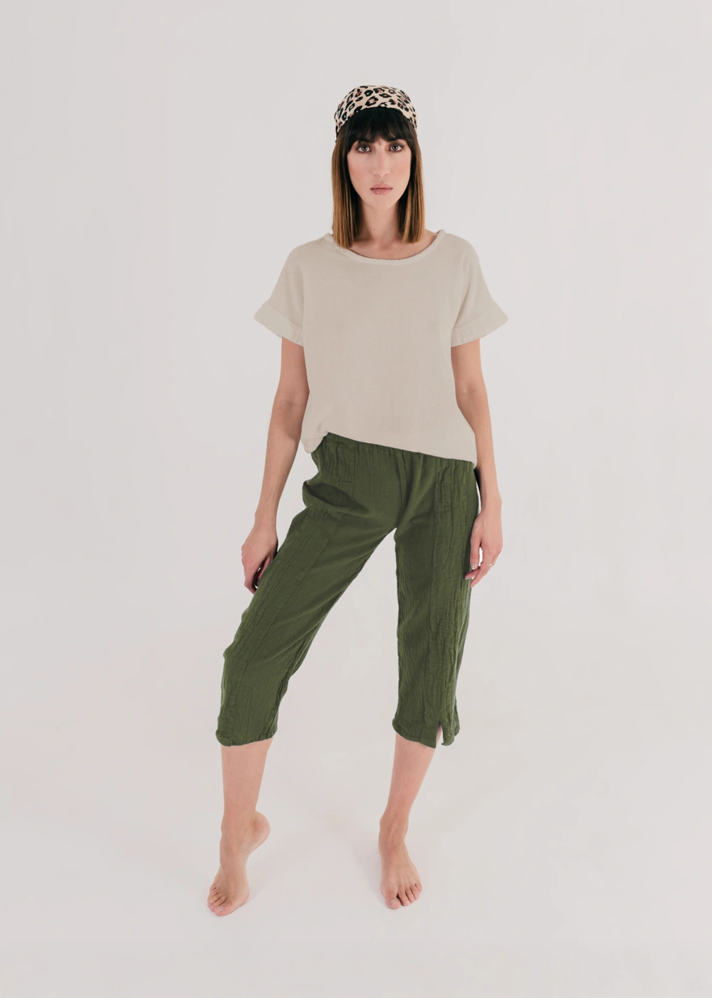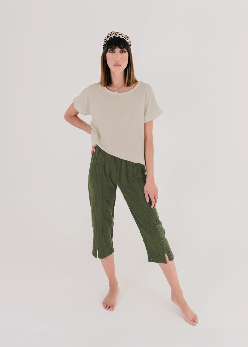 Esta blusa se distingue por su diseño sencillo, con manga corrida y un delicado detalle de valenciana en las mangas. Es una prenda versátil que combina con todo, añadiendo un toque de estilo a tu guardarropa diario.