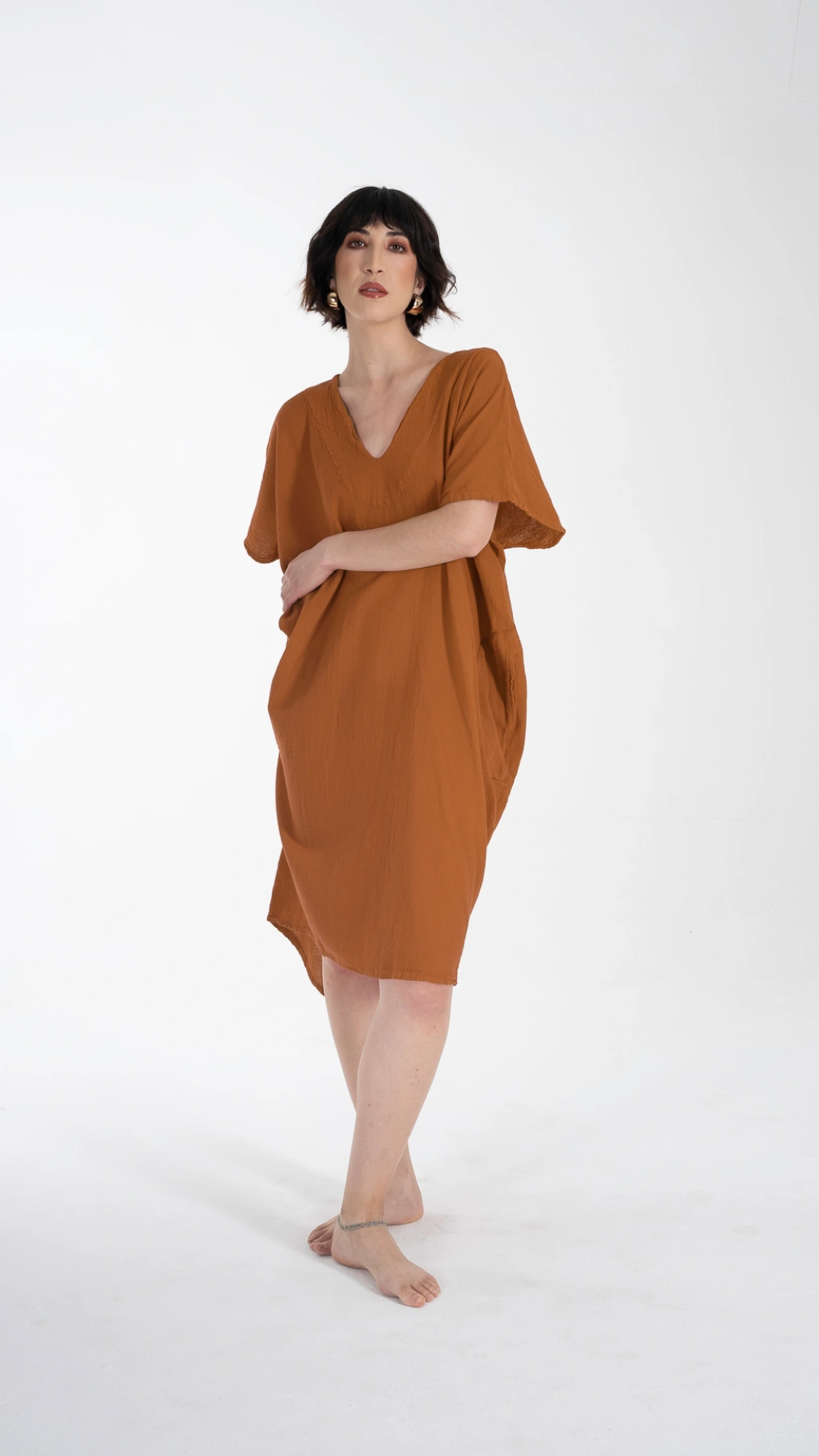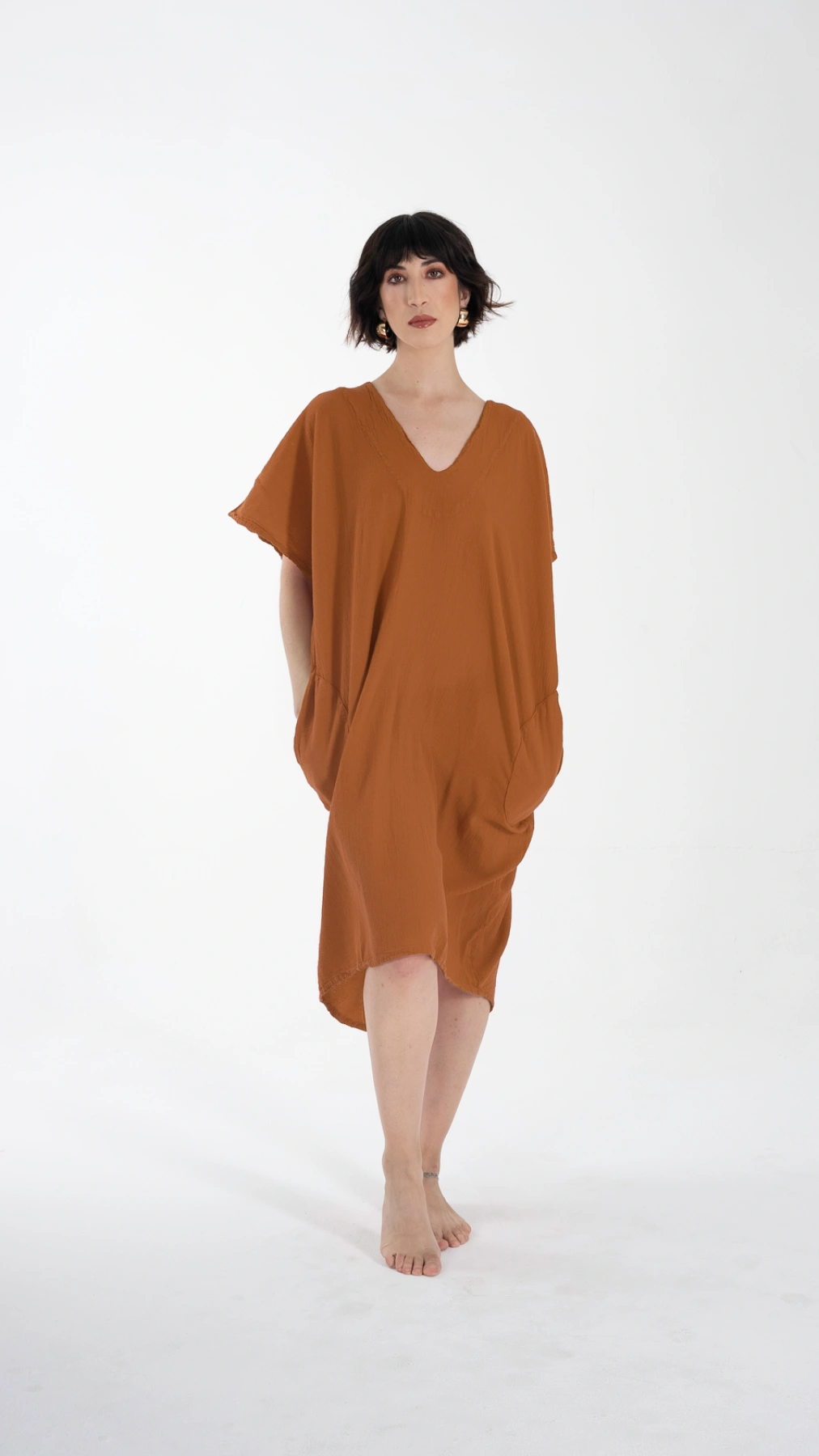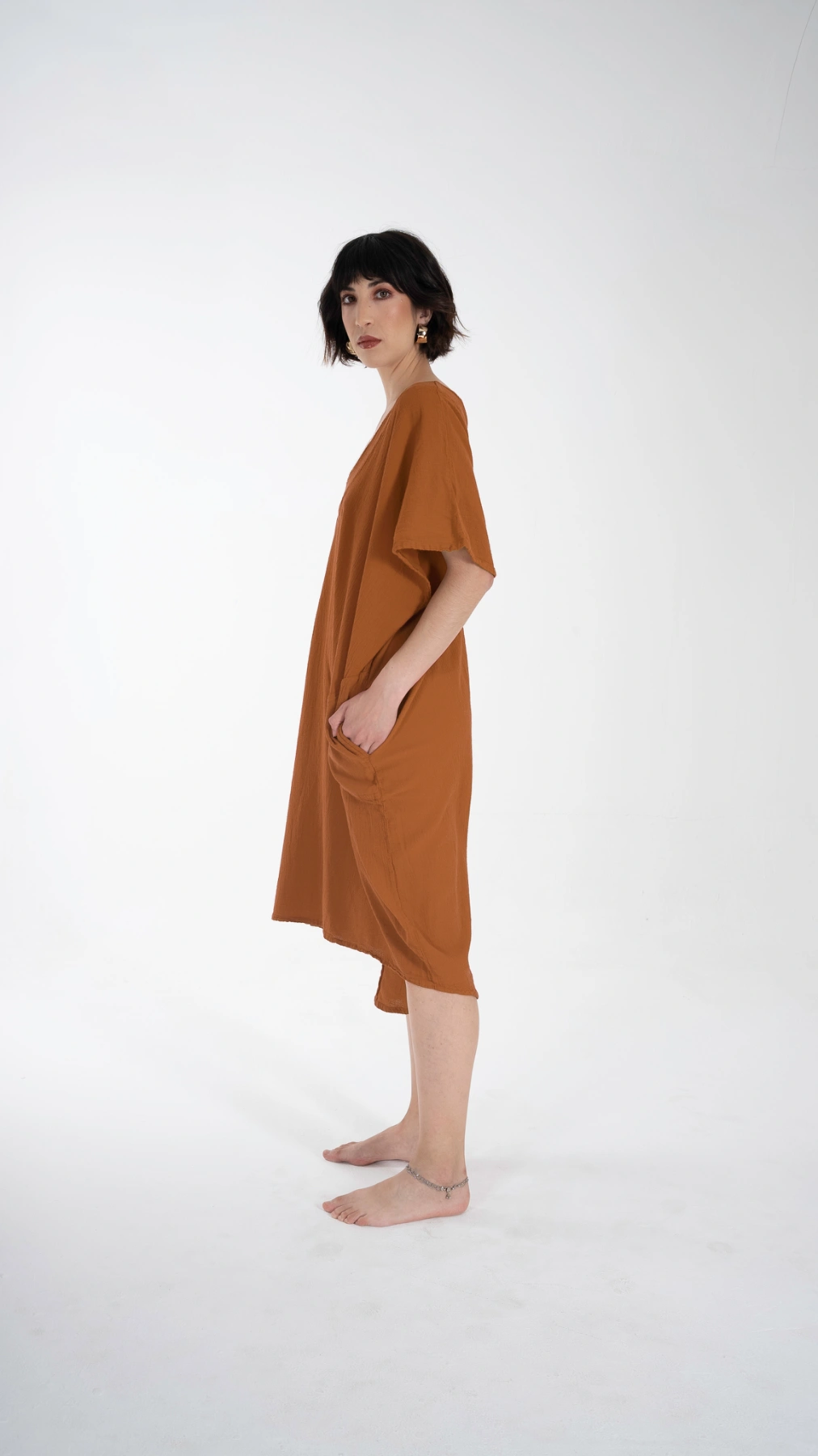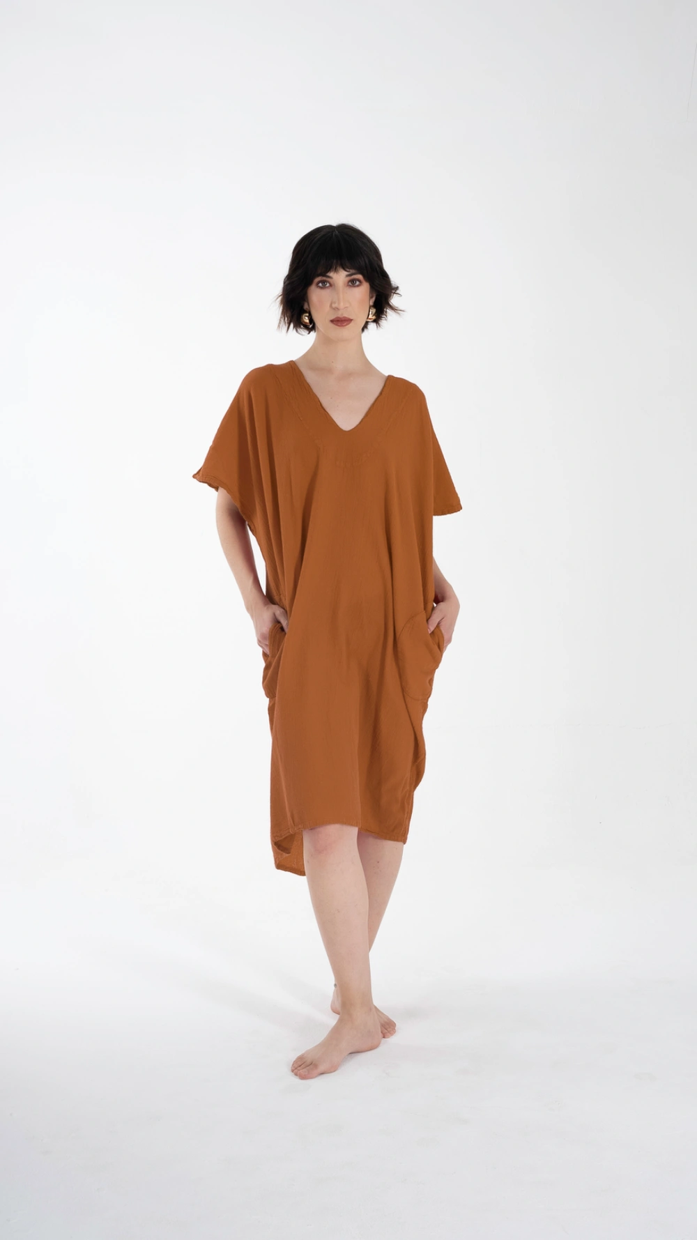 Este hermoso vestido está inspirado en la moda marroquí. Con bolsillos laterales y un corte ligeramente más angosto en la parte de abajo, es la combinación perfecta de comodidad y estilo. Perfecto para una salida casual, un día de playa o una reunión relajada.